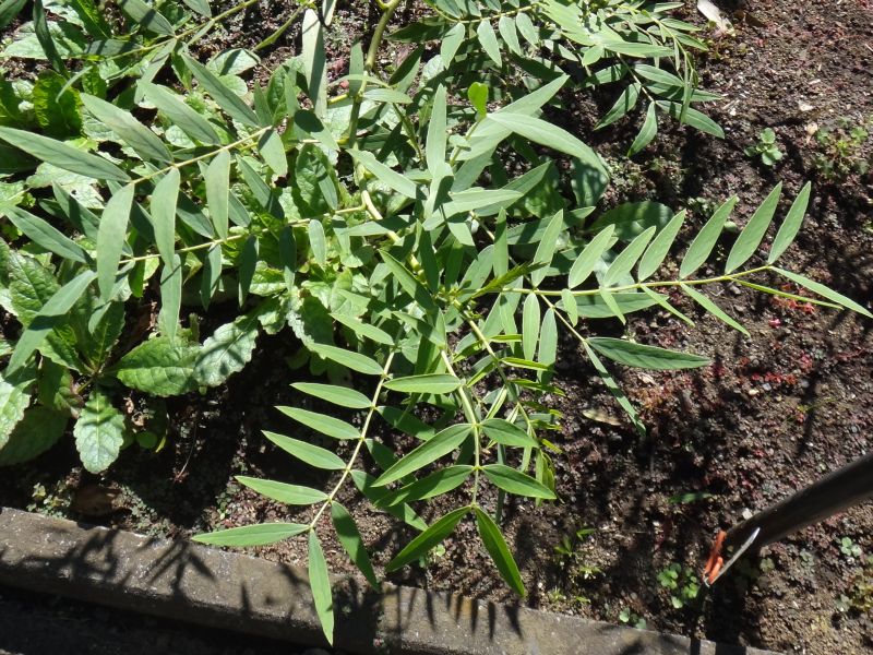 羽状複葉が出るたびに茎が少し曲がるので、茎はジグザグ気味にのびる。