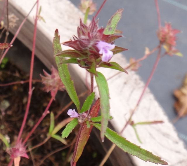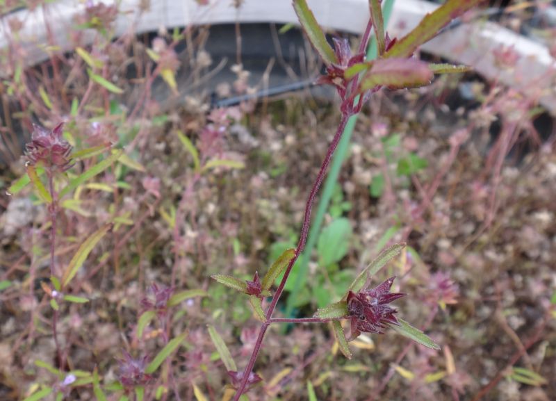 茎は断面が四角で、細くて直立し、紫色を帯び、