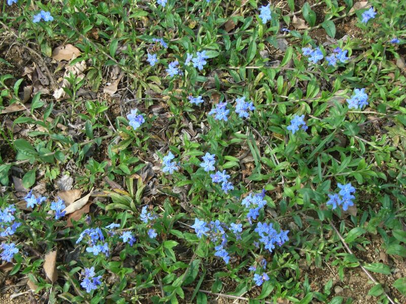 茎はかたく、つるのように地をはう。花後にはつる先に新しい株をつくる。