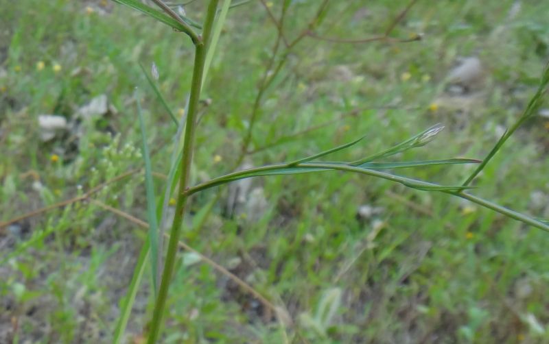オオホウキギク :葉は先が次第に細くなる線形で、茎を抱く。上部の枝は上を向く。