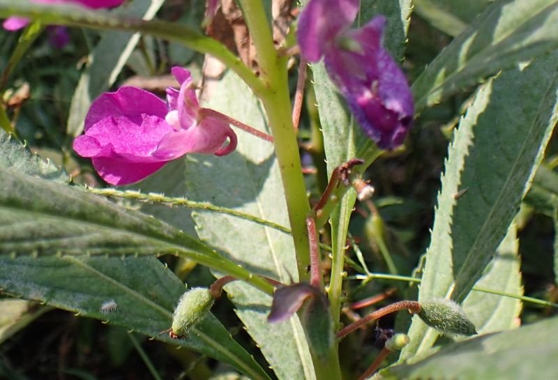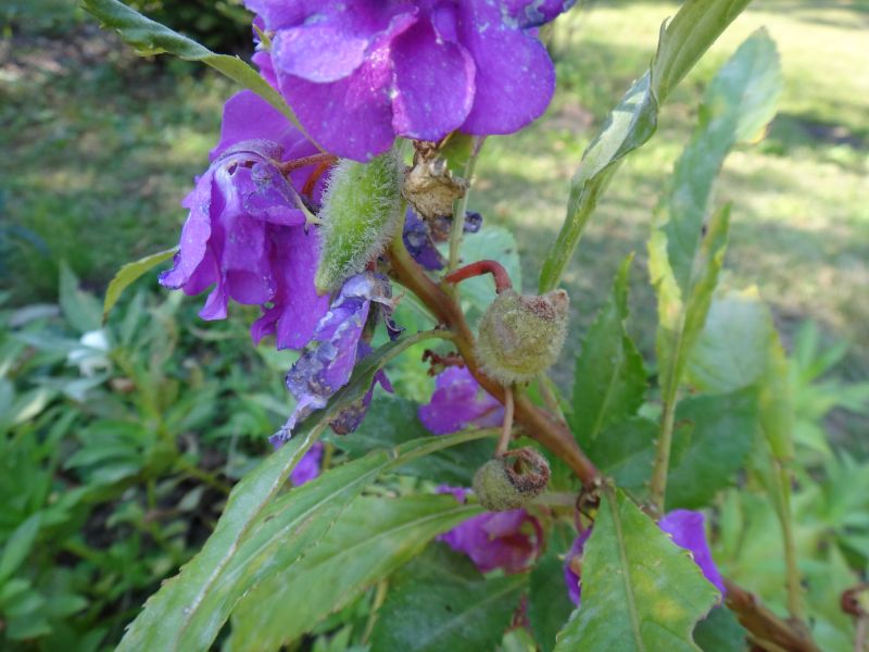 熟した刮ハに触るとはじけて、黒褐色の楕円形の種がとぶ。