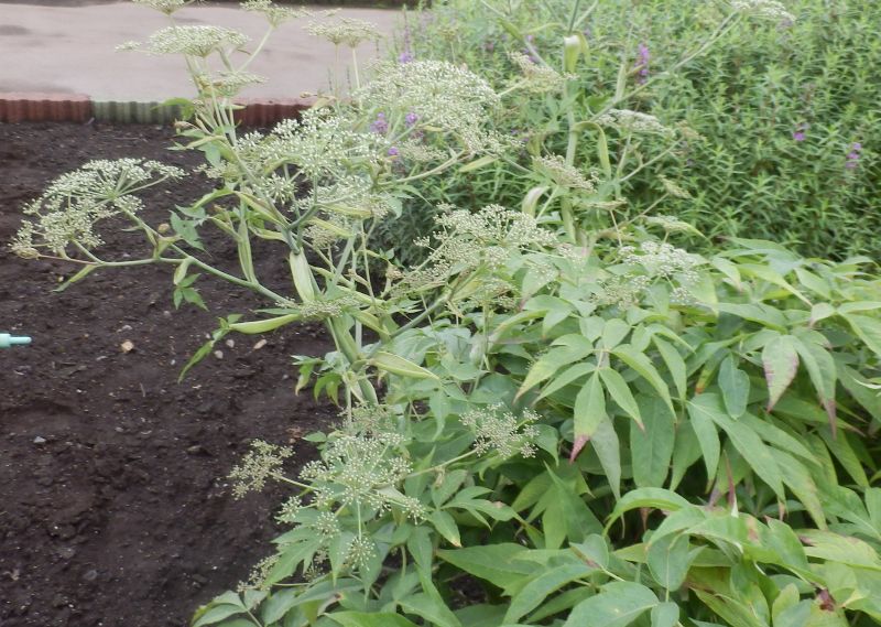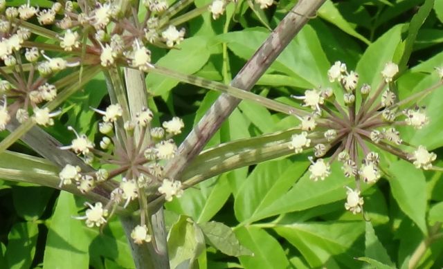 複散形花序に小さい花が多数咲く。(2016/7/27)