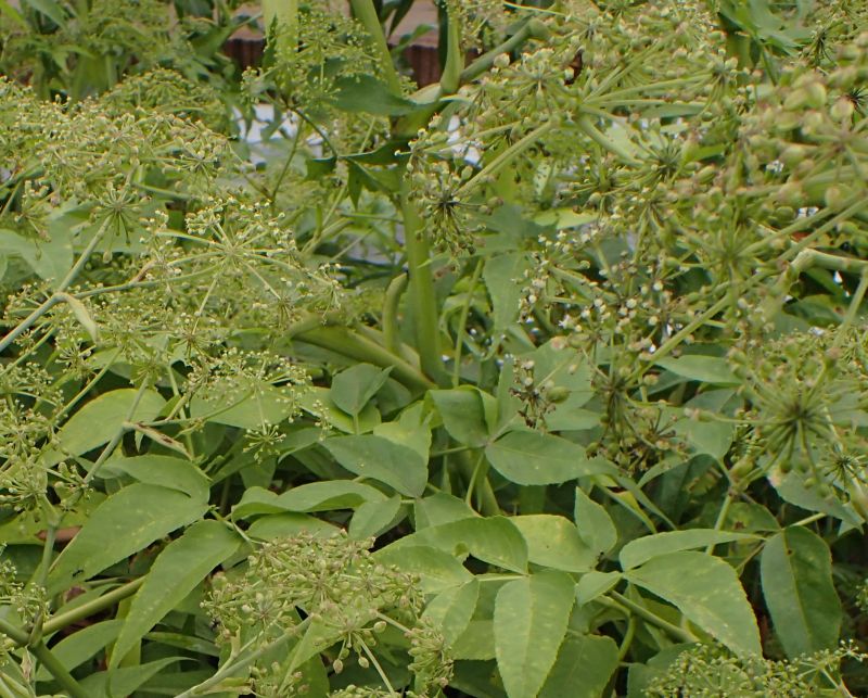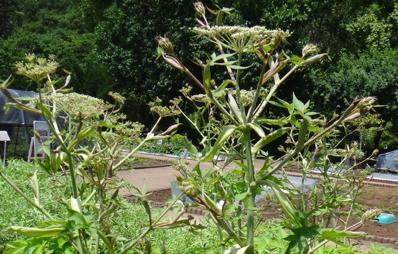 ヒュウガトウキ:1〜2メートル、小葉切れ込み少、鋸歯細かい、光沢なし、薬効強い。