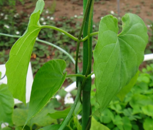 葉は先の尖った心形で、葉柄が長い。(2016/9/28)