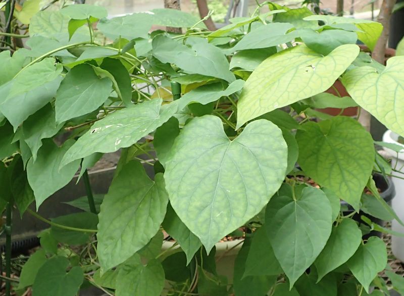 葉は心形で、葉柄が長く、全縁で、対生する。