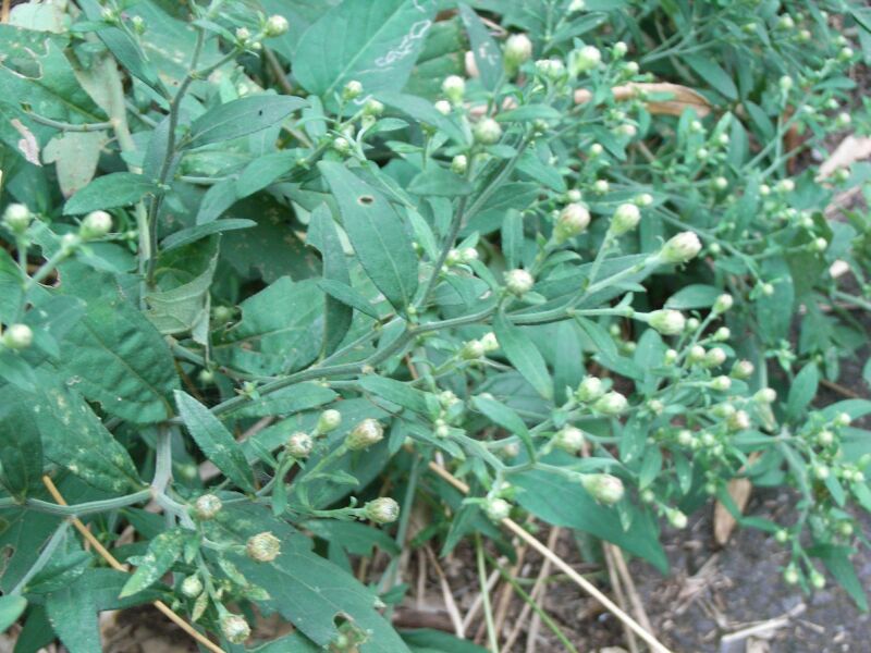 シロヨメナ:茎は直立し、葉は鋸歯のある長楕円状被針形で先がとがって光沢があり、基部はくさび形で、舌状花は白く総苞は筒状。