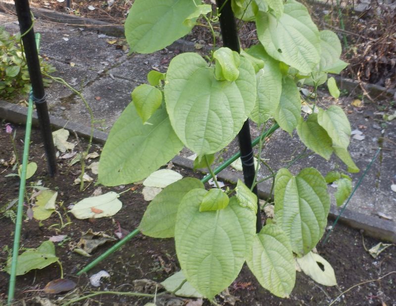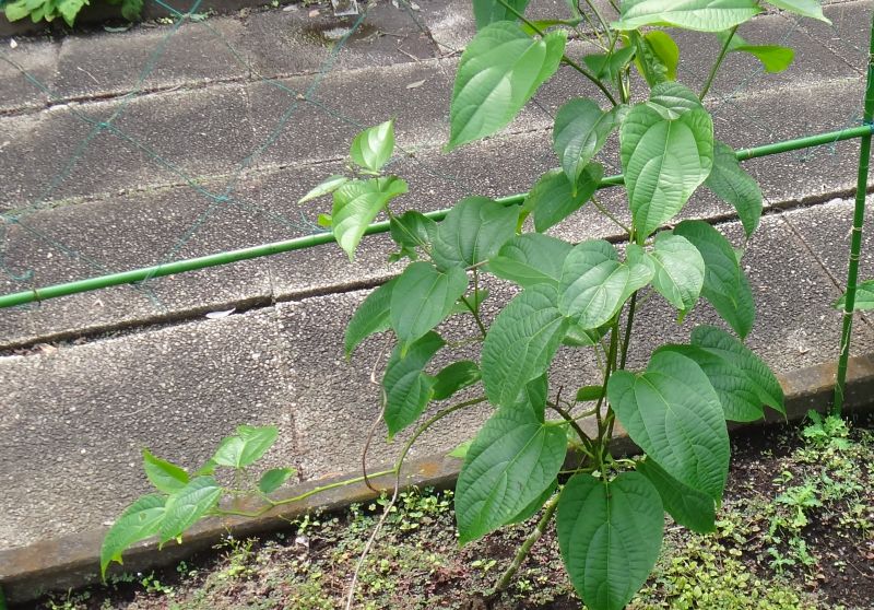 葉は卵心形で先がとがり、葉柄が長く、互生する。