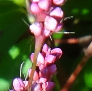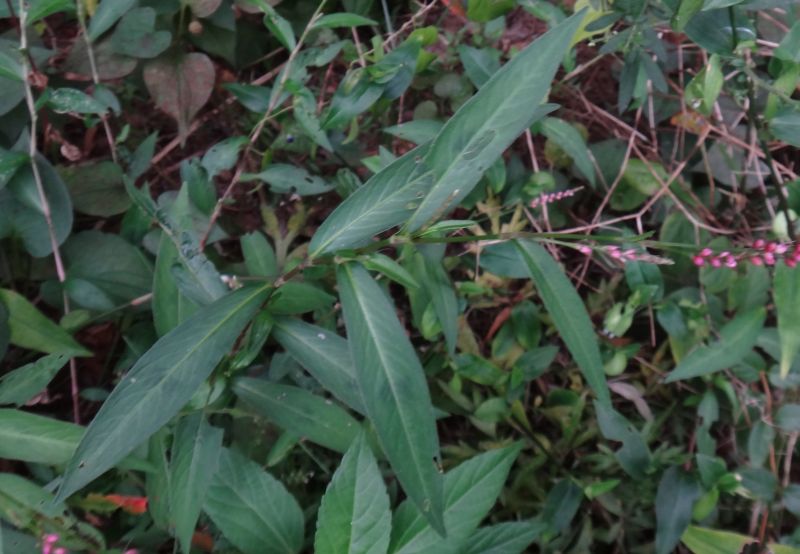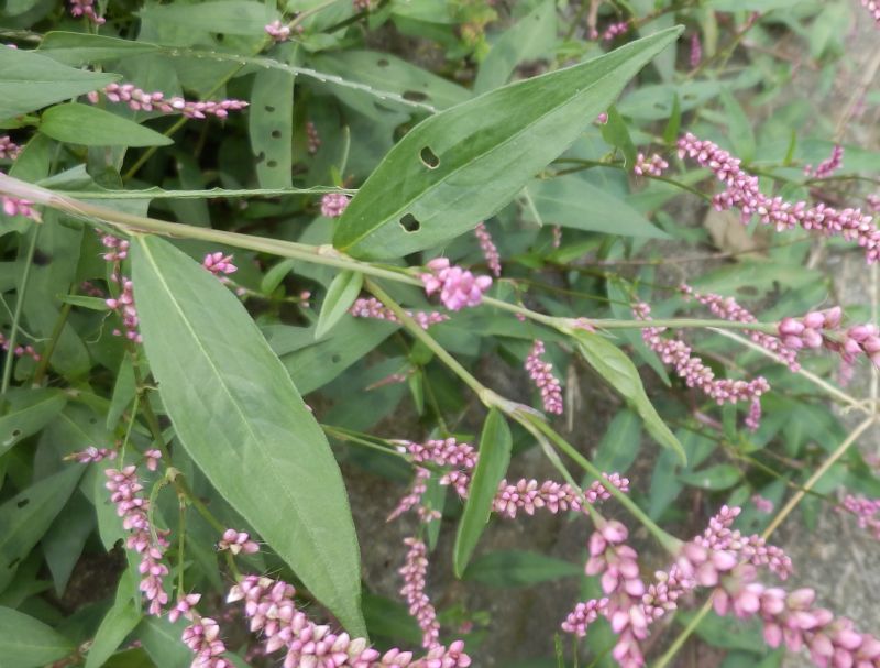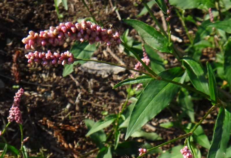 オオイヌタデ:1〜2メートルと大きく、花は淡紅色、穂は3〜7センチで垂れ、葉は披針形でとがる。