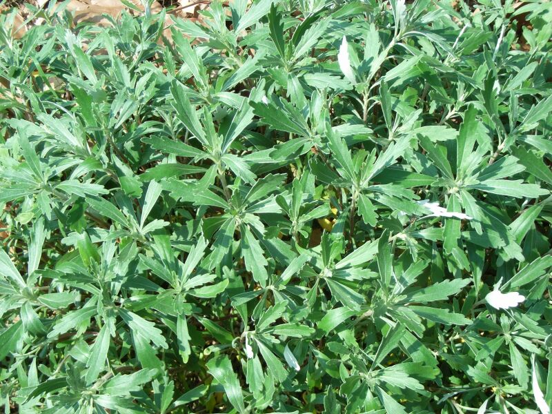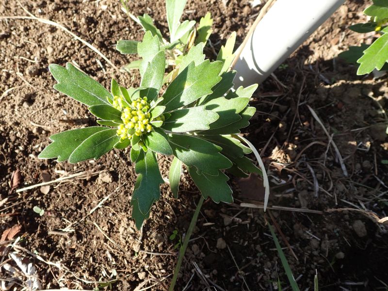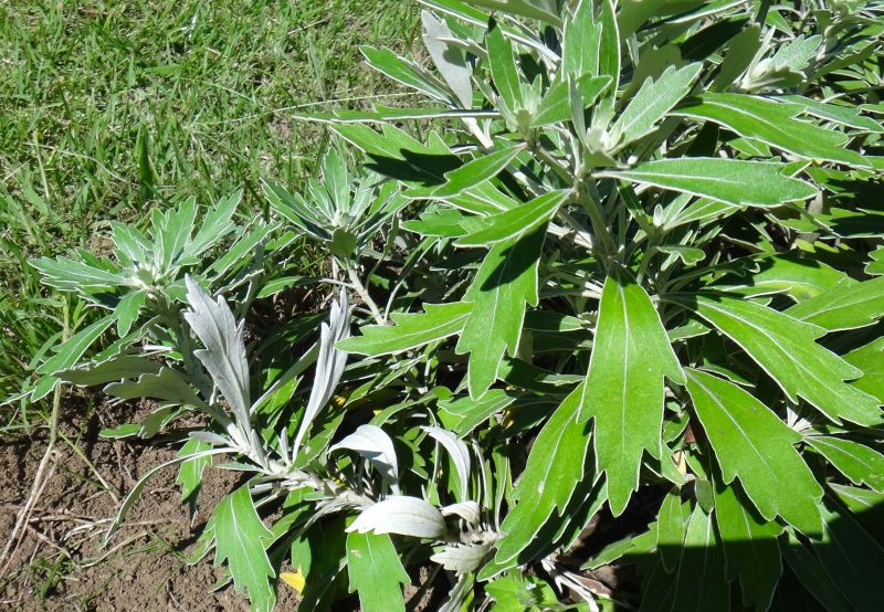 葉は倒披針形で上部は浅く裂け、縁が白い。