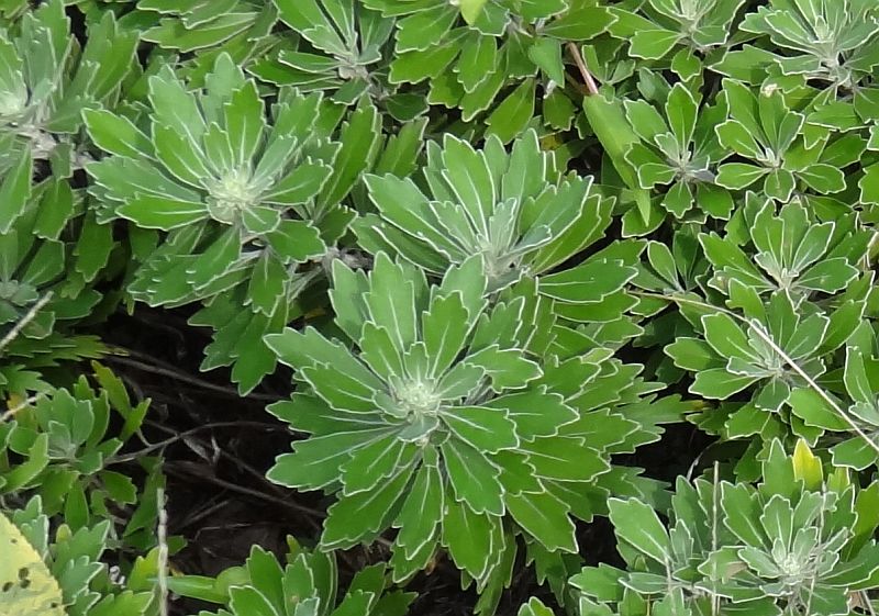 (裏面の白毛が表面から見ると葉を縁取りしているように見える。)