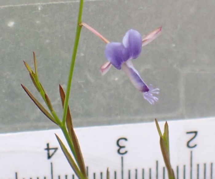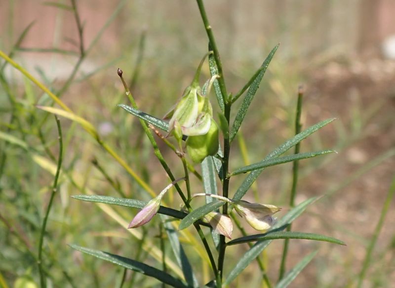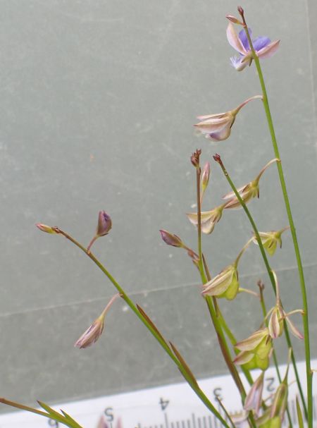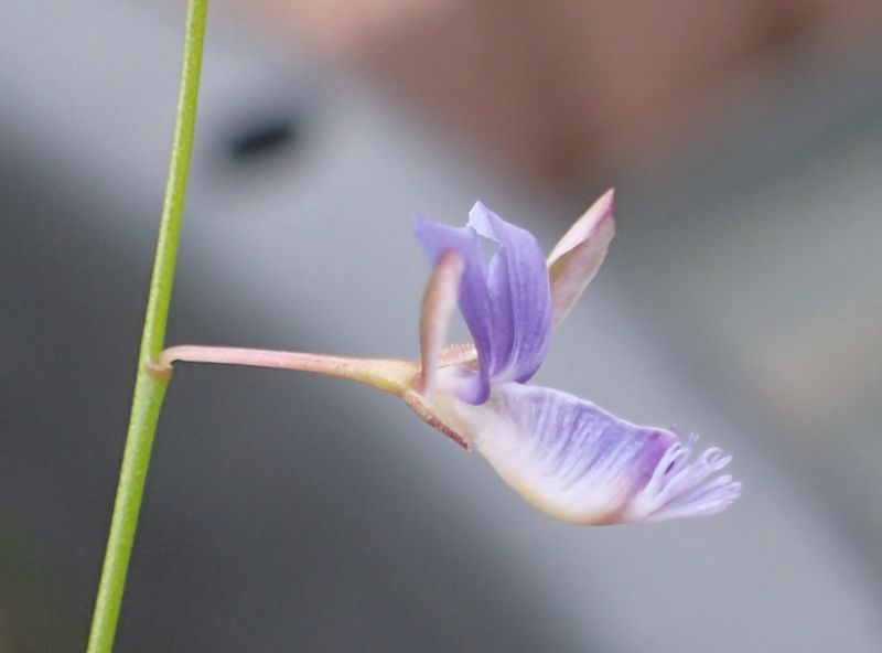 淡青紫色の小さな蝶形花がまばらに咲く。