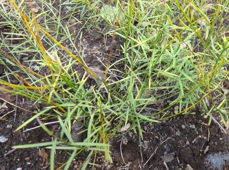 根から沢山の細い茎が出て、立ち上がってから分枝する。