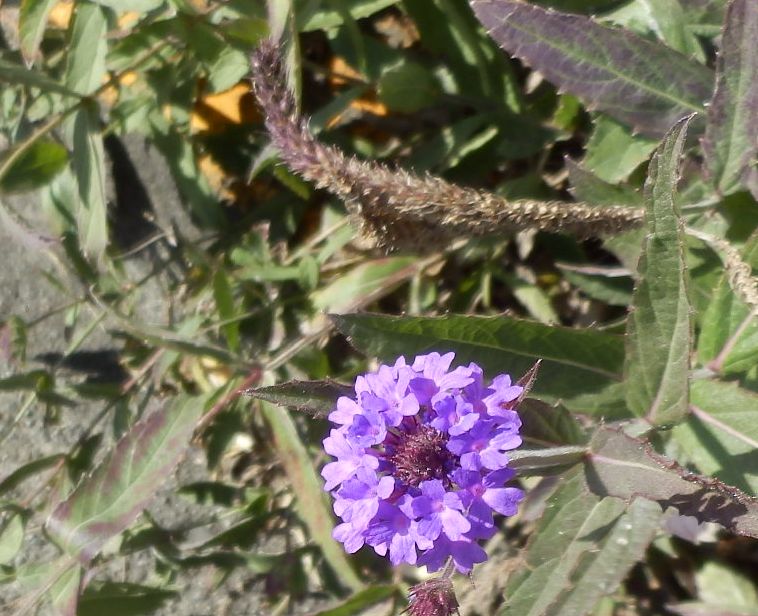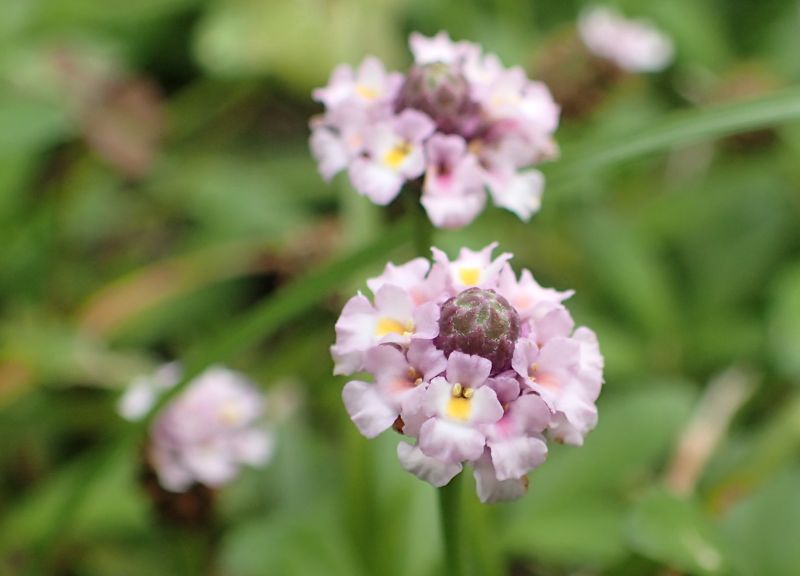 花序は円柱状に成長し、その上面に紅紫色の花を密につける。