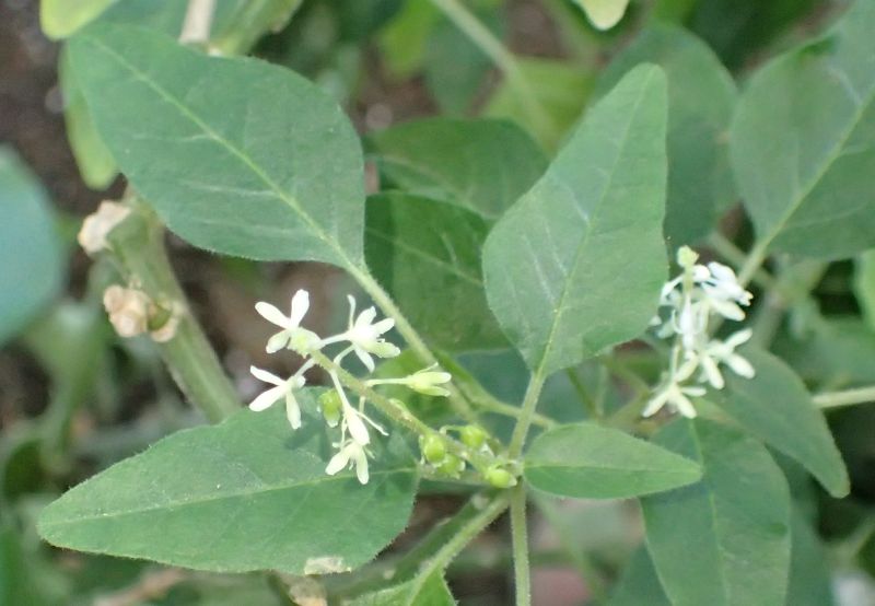 葉は長さ8センチ弱で、尖った卵形、あるいは披針形であり、互生する。