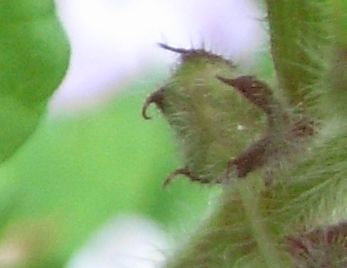 先の5裂する萼の中で、4分果ができつつある。(2009/4/20)