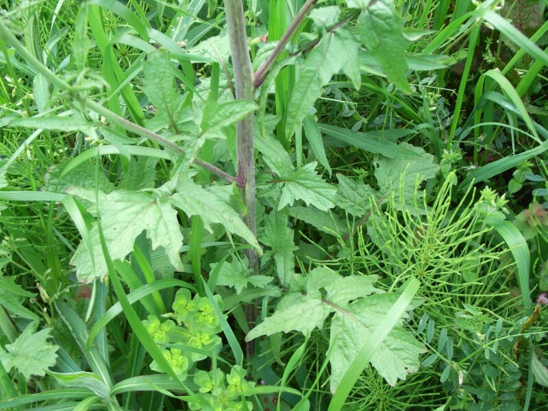 葉は互生し、下部の葉は羽状に深裂し、長さ20センチぐらいあるが、