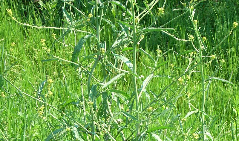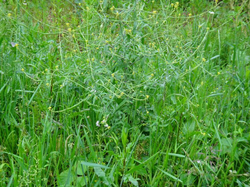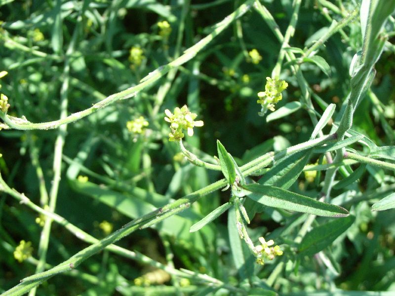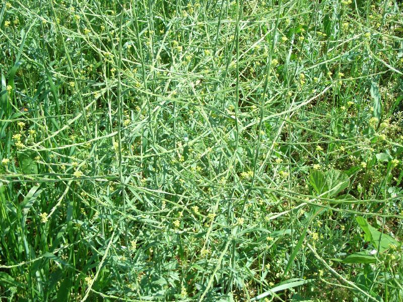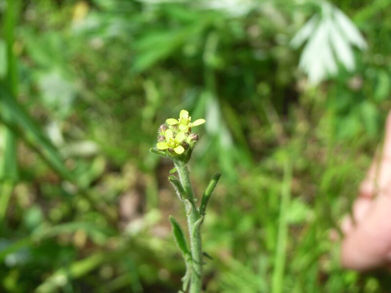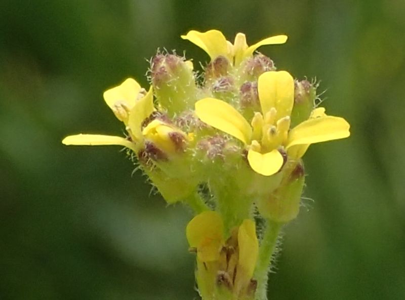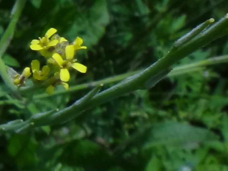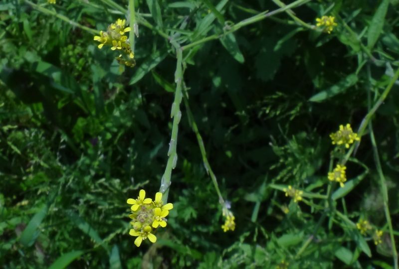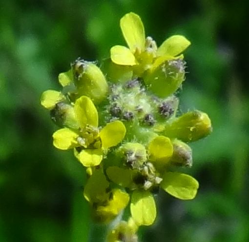 枝先に、黄色くて直径4〜5ミリと小さい4弁花が総状に咲く。