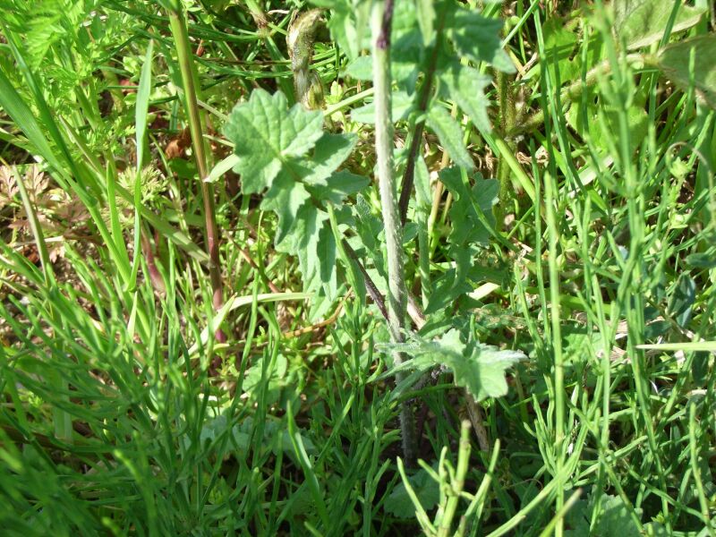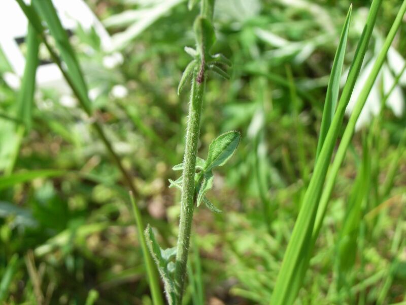茎は下向きの毛があり、よく分枝して広がり、上部の葉は目立たないので、