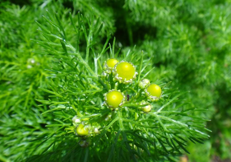 ローマンカモミール。双方片は細長くて先のとがった倒卵形。(2023/6/4)