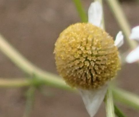 ジャーマンカモミールは筒状花部分の盛り上がりが大きい。(2017/4/22)