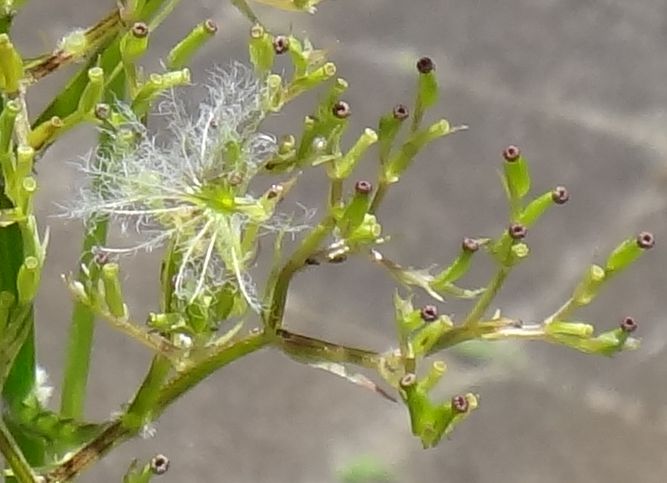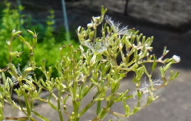 果実は細長いそう果で、萼が羽状に裂けてできた白い冠毛がある。(2017/6/3)