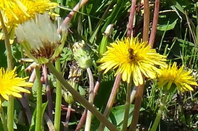 シロバナタンポポ:舌状花が白い。単為生殖する。
