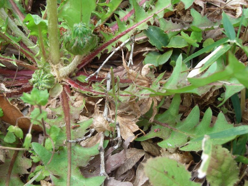 冬の葉はロゼット状で、花茎は短くて毛深い。