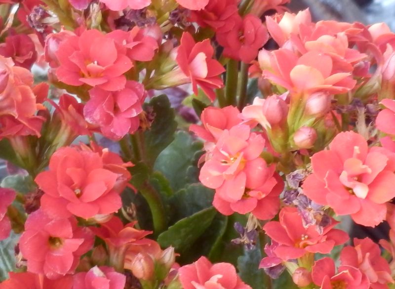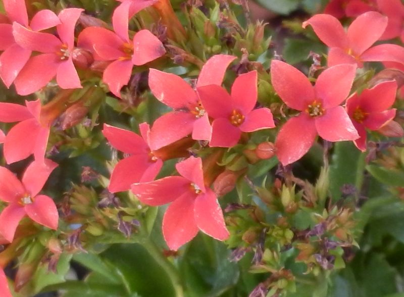 茎先に赤や薄紅の小さい4弁花を多数密集させて咲かせる。