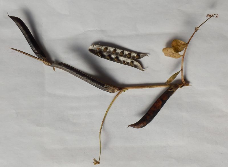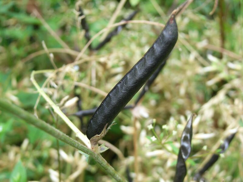 長さ3〜5センチの豆果がつき、熟すと黒くなり、
