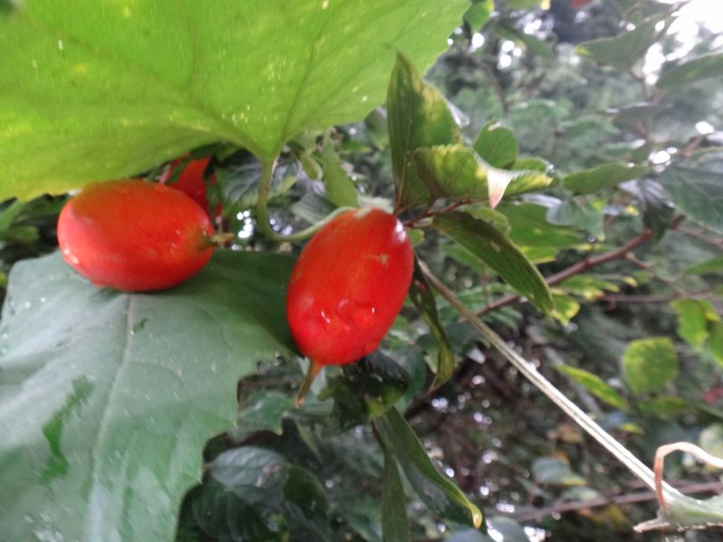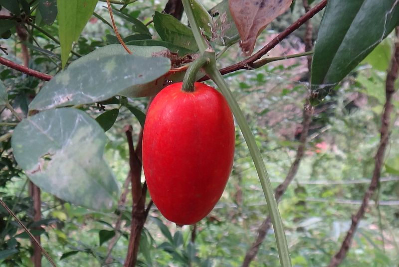 果実は長さ5〜7センチの朱赤色の楕円形〜球形で、