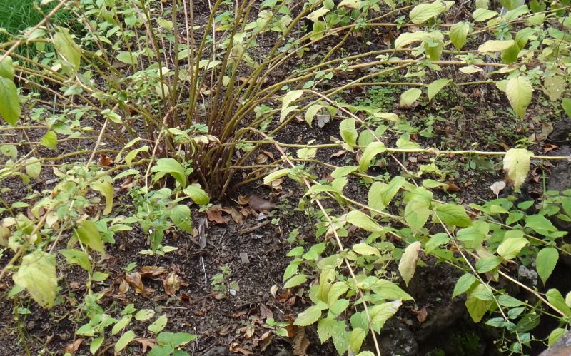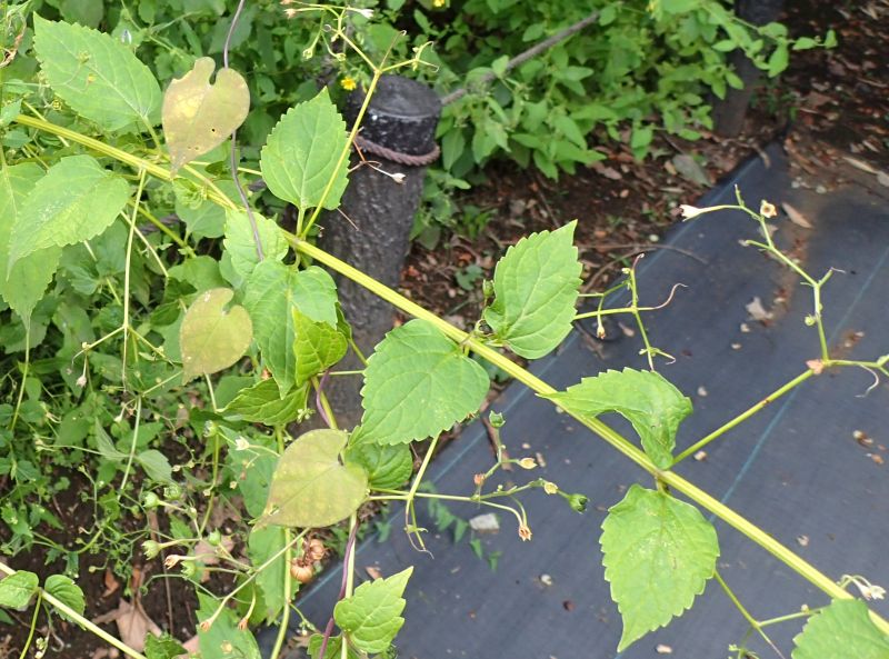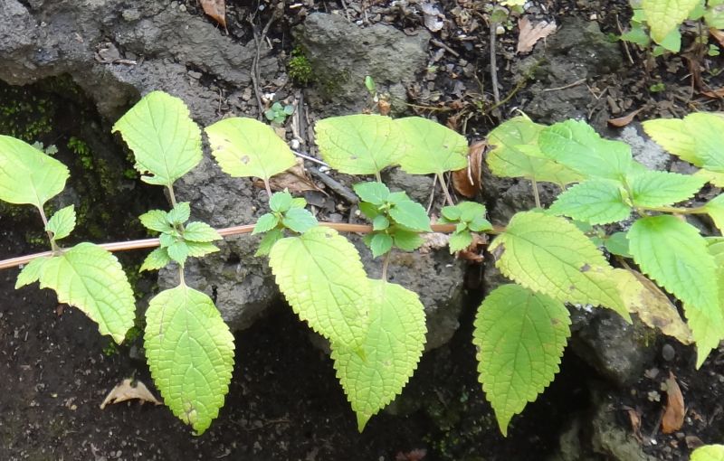 茎の断面は4角形で葉は対生する。葉の付け根から短い枝が出て葉も出る。(2014/10/18)