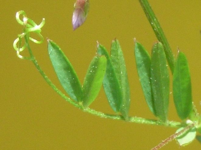 先がややとがる。複葉の先がつるとなって他物にからむ。