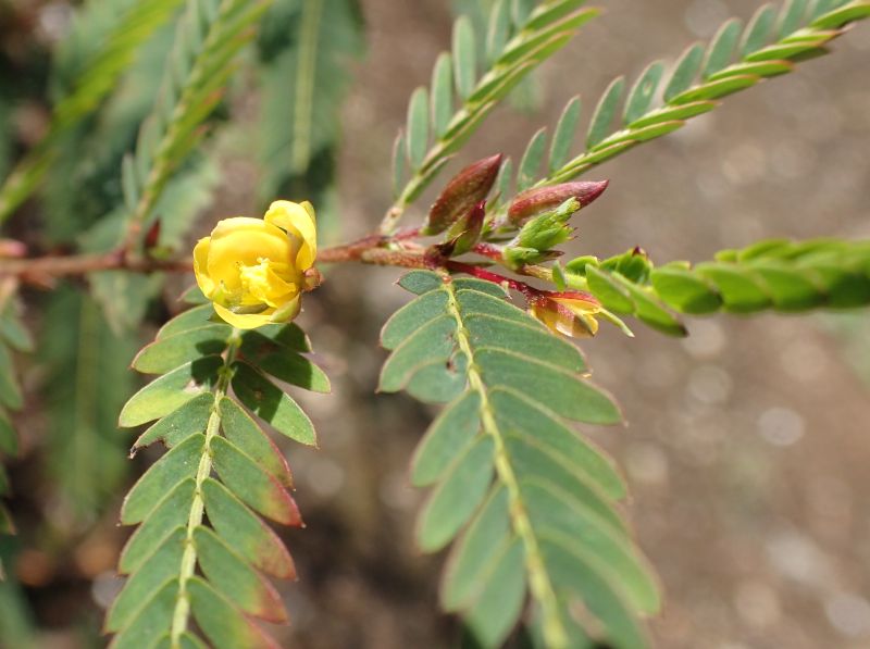 偶数羽状複葉が互生する。小葉は被針形で30対ぐらいある。