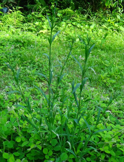苗の時の葉は線形ではなくて長楕円形。(2021/10/24)