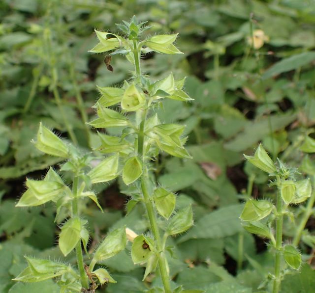 下方の萼には褐色の分果が、上方の萼には緑色の未熟の分果が見える。