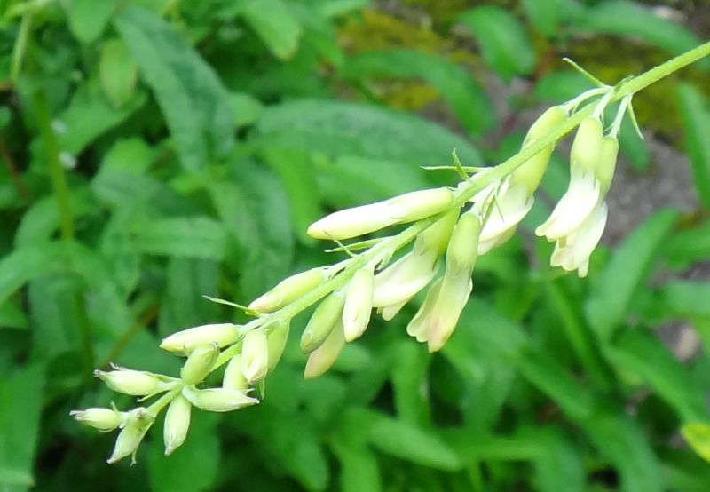 花茎の先に淡黄白色の蝶形花が総状に咲く。(2016/9/28)
