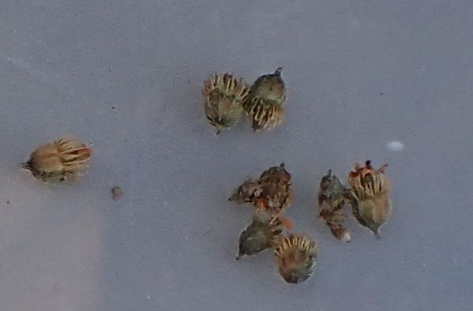 果実は熟すと棘のついた小さなドングリ状となる。(2022/10/29)