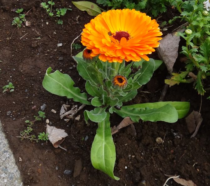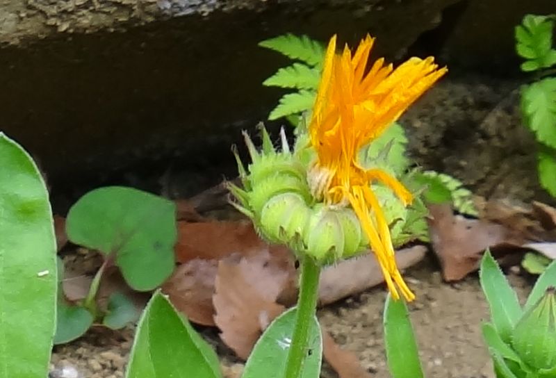 茎先に直径1.5〜10センチのオレンジ色(あるいは黄色)の花が1個咲く。