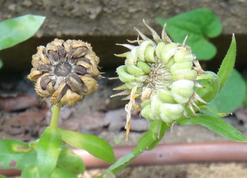 ジニア属、舌状花と筒状花をもつ。1年草。
