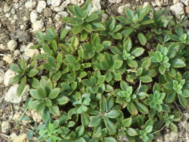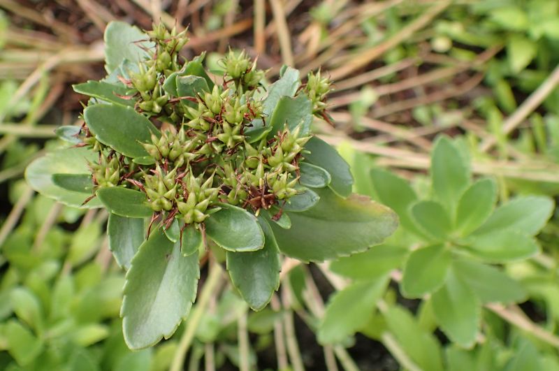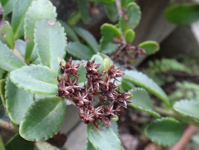 葉も多肉質で互生し、幅広で長さ3〜4センチある楕円形であり、