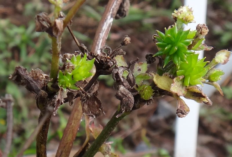 そう果の先がまがる。茎葉も深く切れ込む。