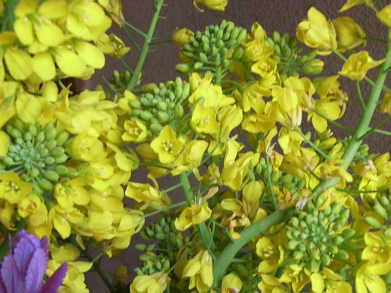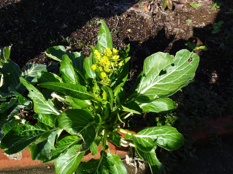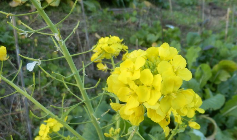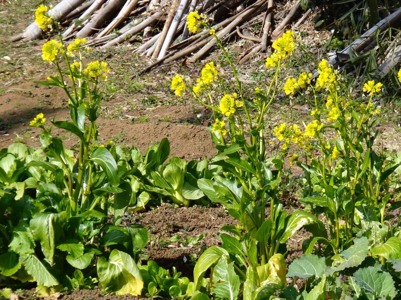春に茎が高さ1メートルぐらいに伸びて(薹立ちして)枝分かれし、