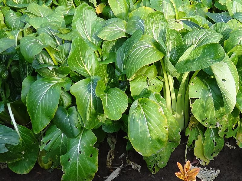 密植すると葉柄が横広がりにならず、上に伸びる。