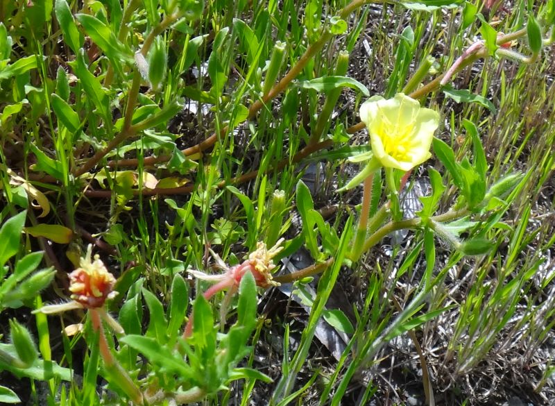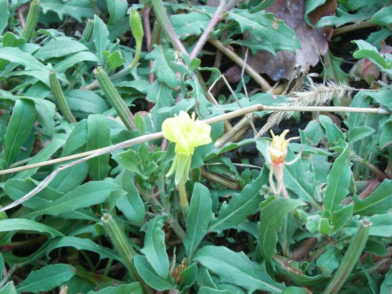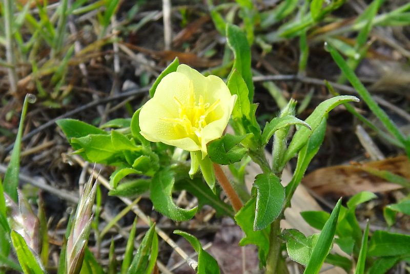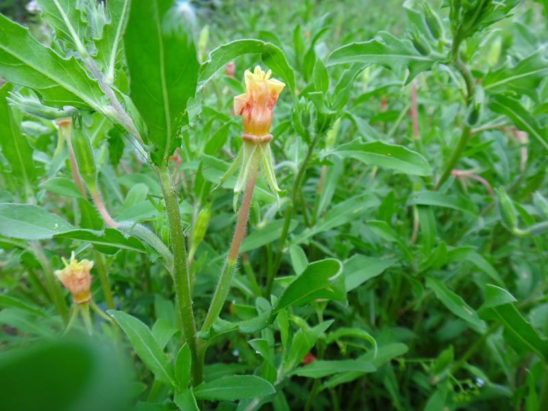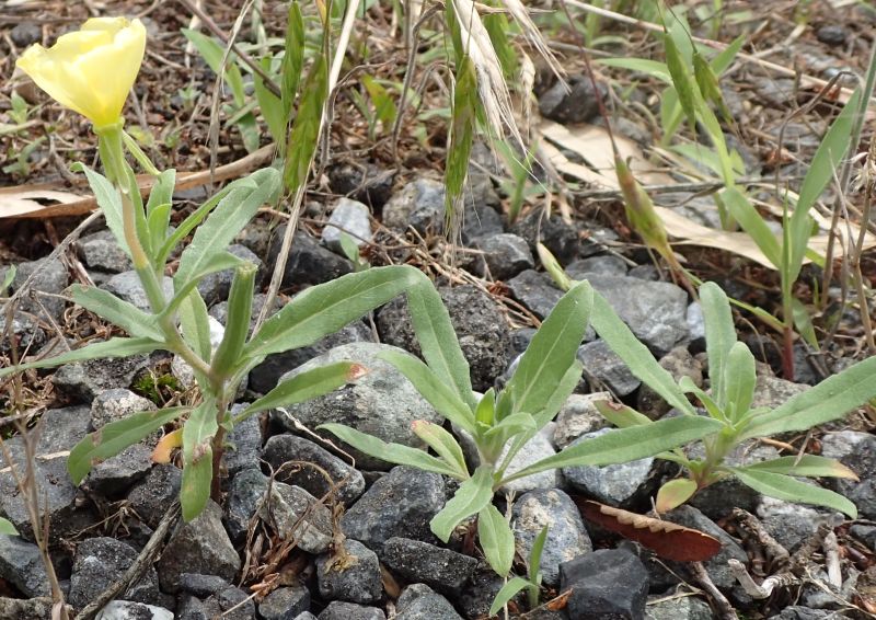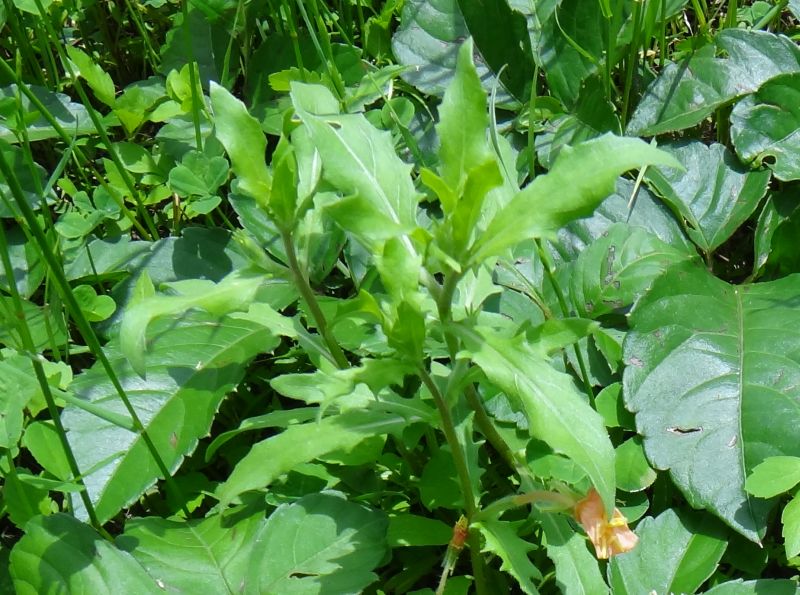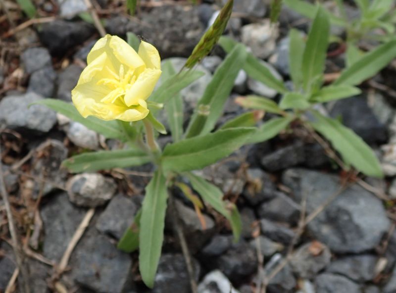 茎は弱々しく直立し、黄色い4弁花を咲かせる。(2018/6/13)
