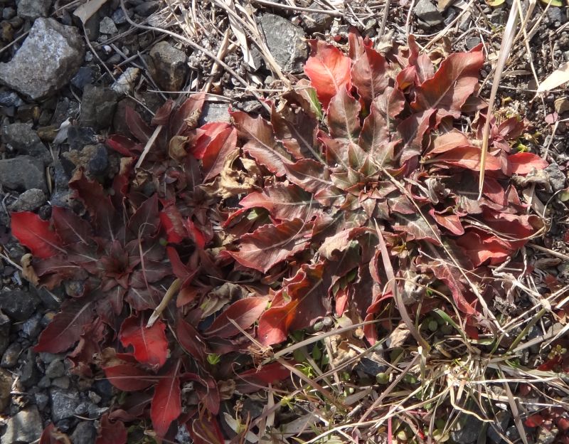 冬期は切れ込みの深い葉を放射状に拡げたロゼットとなる。