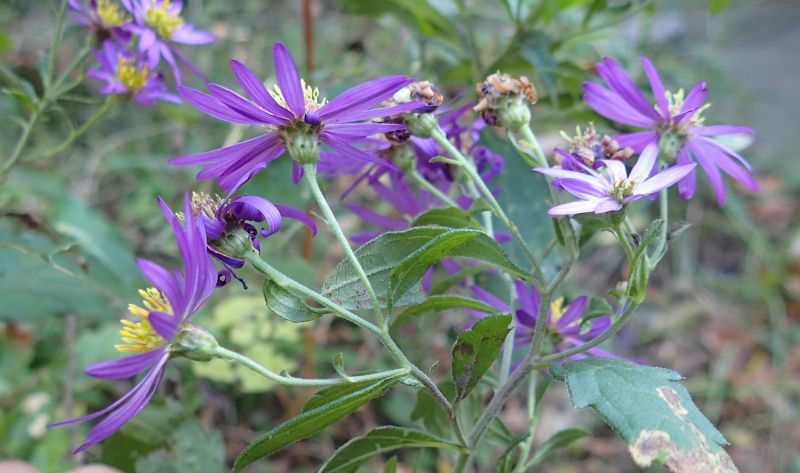 盛んに枝分かれし、青紫色の花を多数咲かせる。