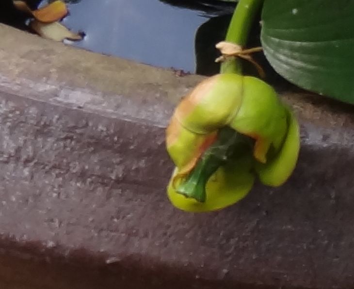 熟すと縦にさけて水面に種子を出す。