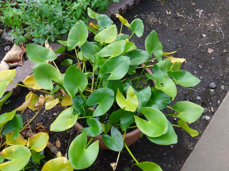 浅い所では水面より上に出る抽水葉となる。