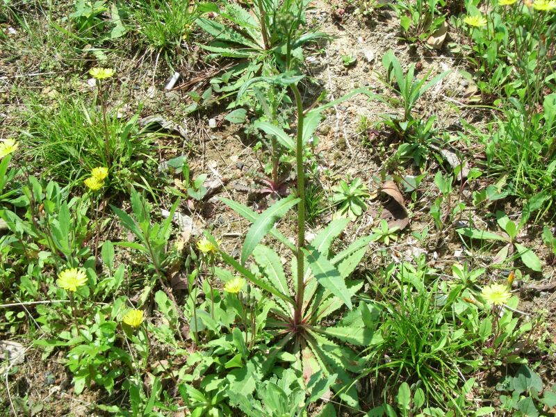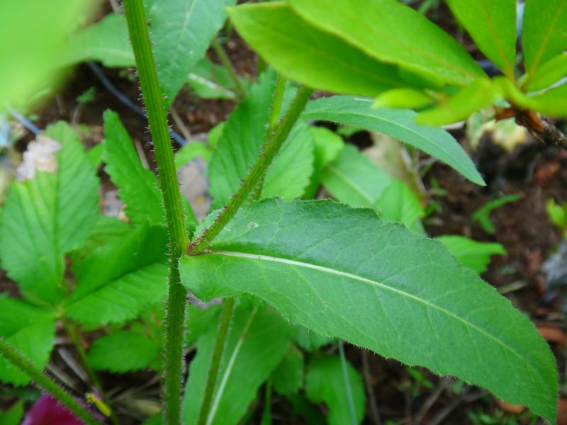 茎葉は披針形。葉はざらつく。(2011/4/10)