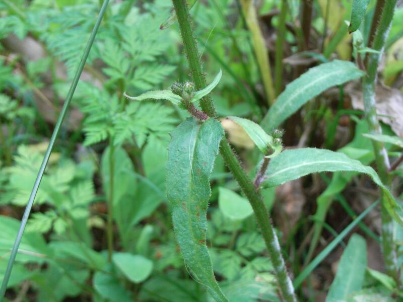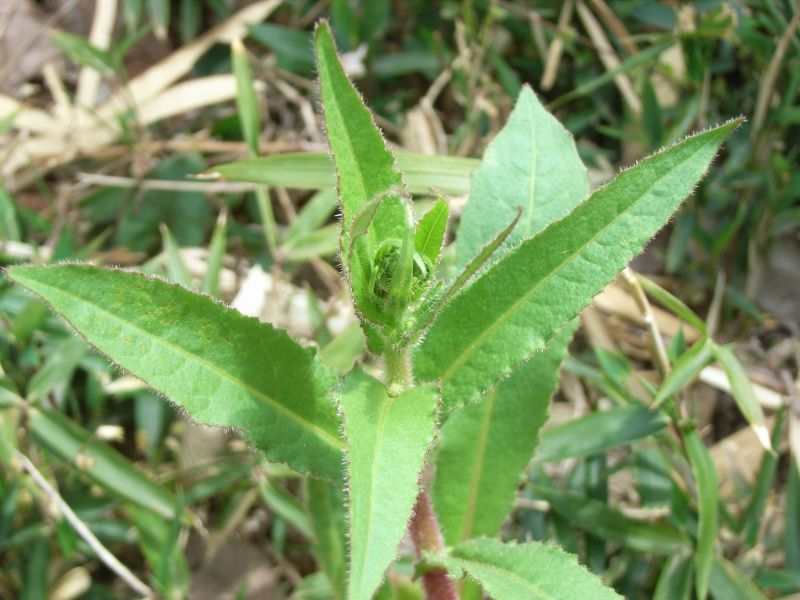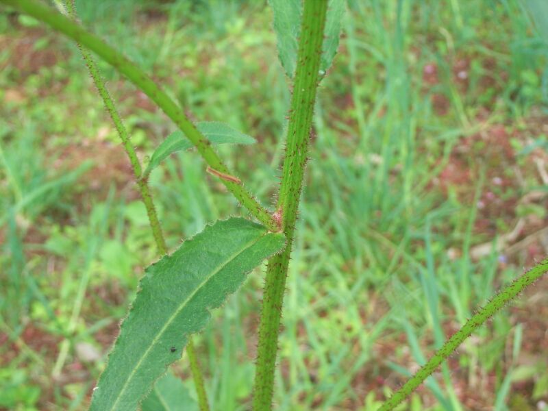 茎や葉に剛毛があってざらつく。茎の剛毛は赤い。